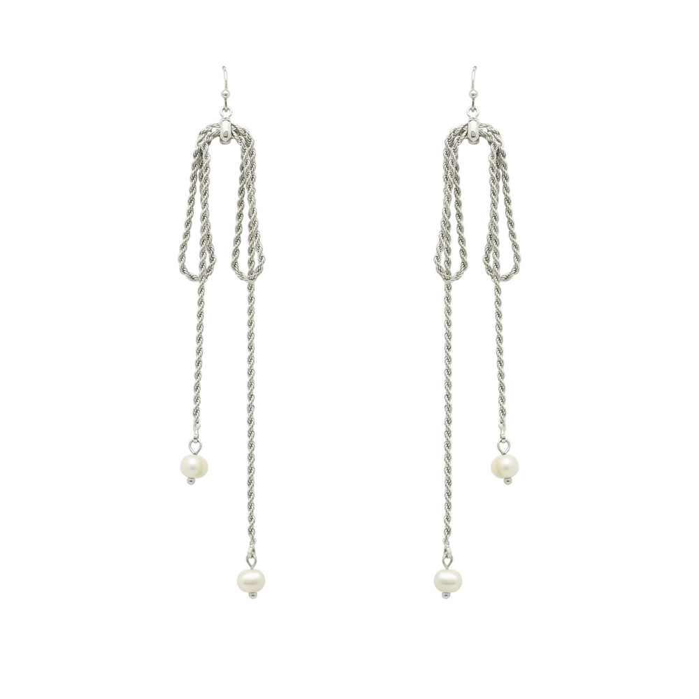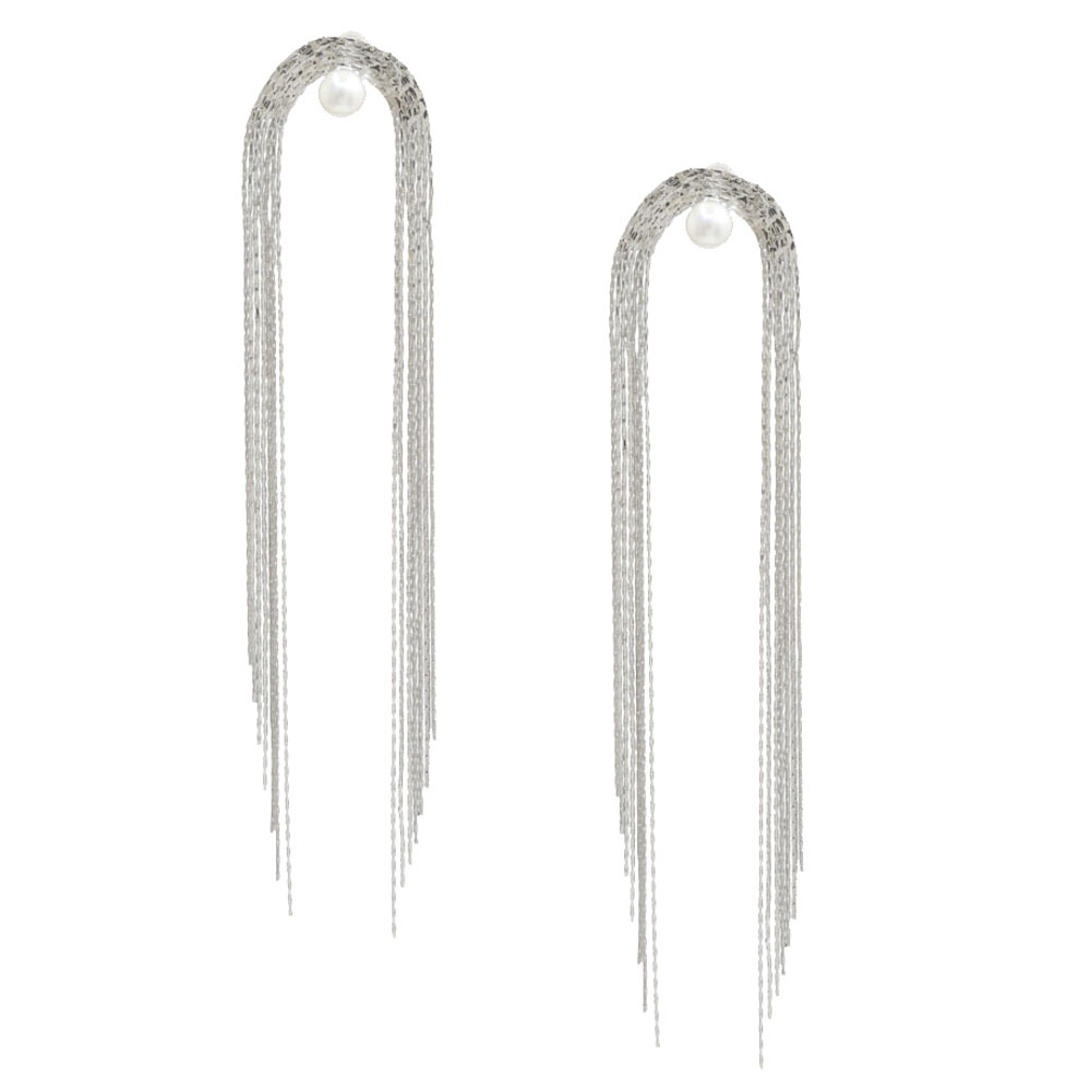 PEARL METAL CHAIN RHINESTONE DANGLE EARRING