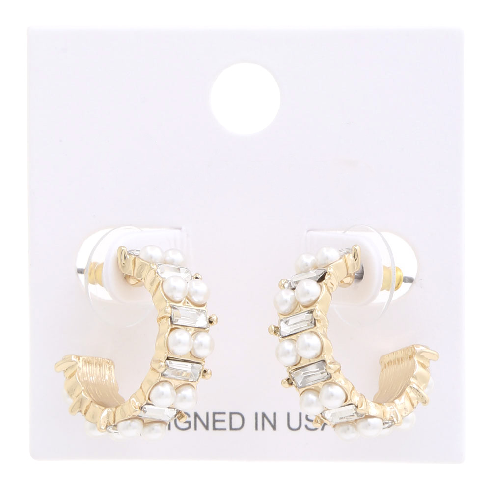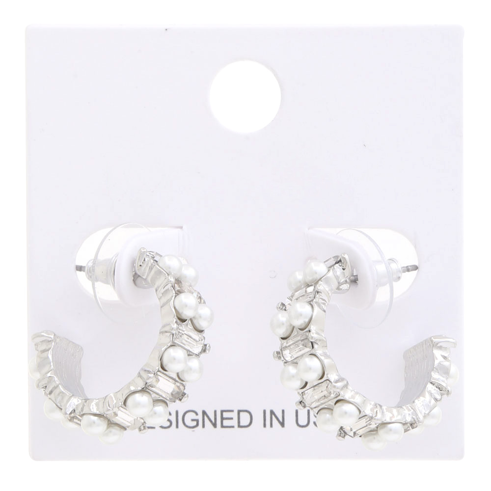 PEARL RHINESTONE CURVE METAL EARRING