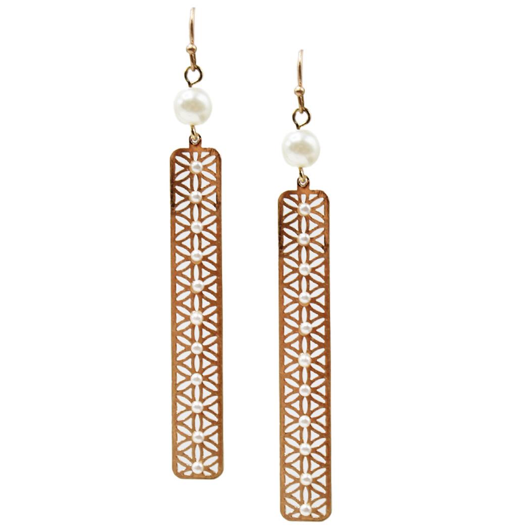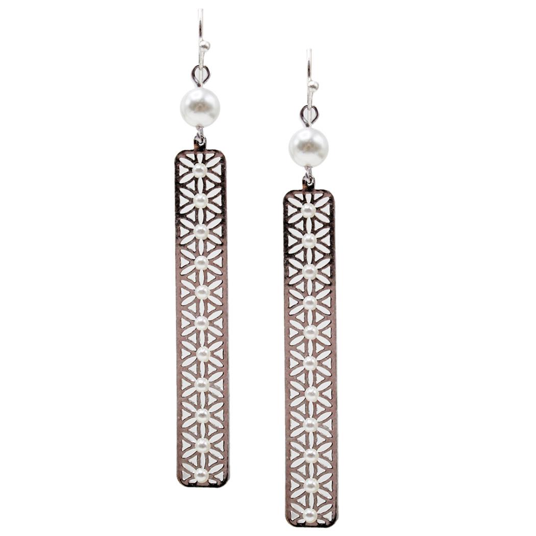 FLAT METAL BAR PEARL DANGLE EARRING