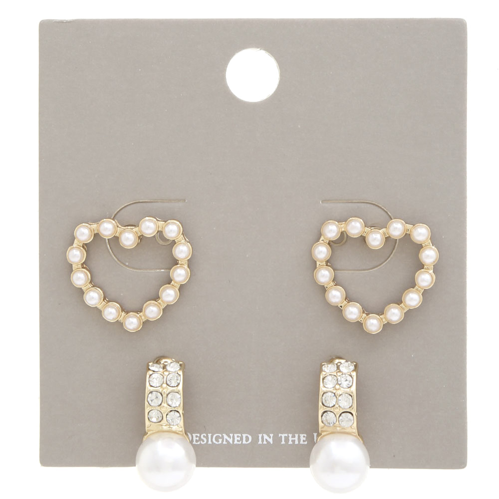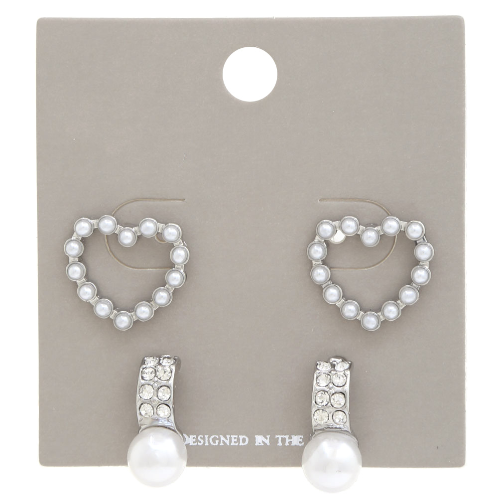 PEARL HEART EARRING 2 PAIR SET