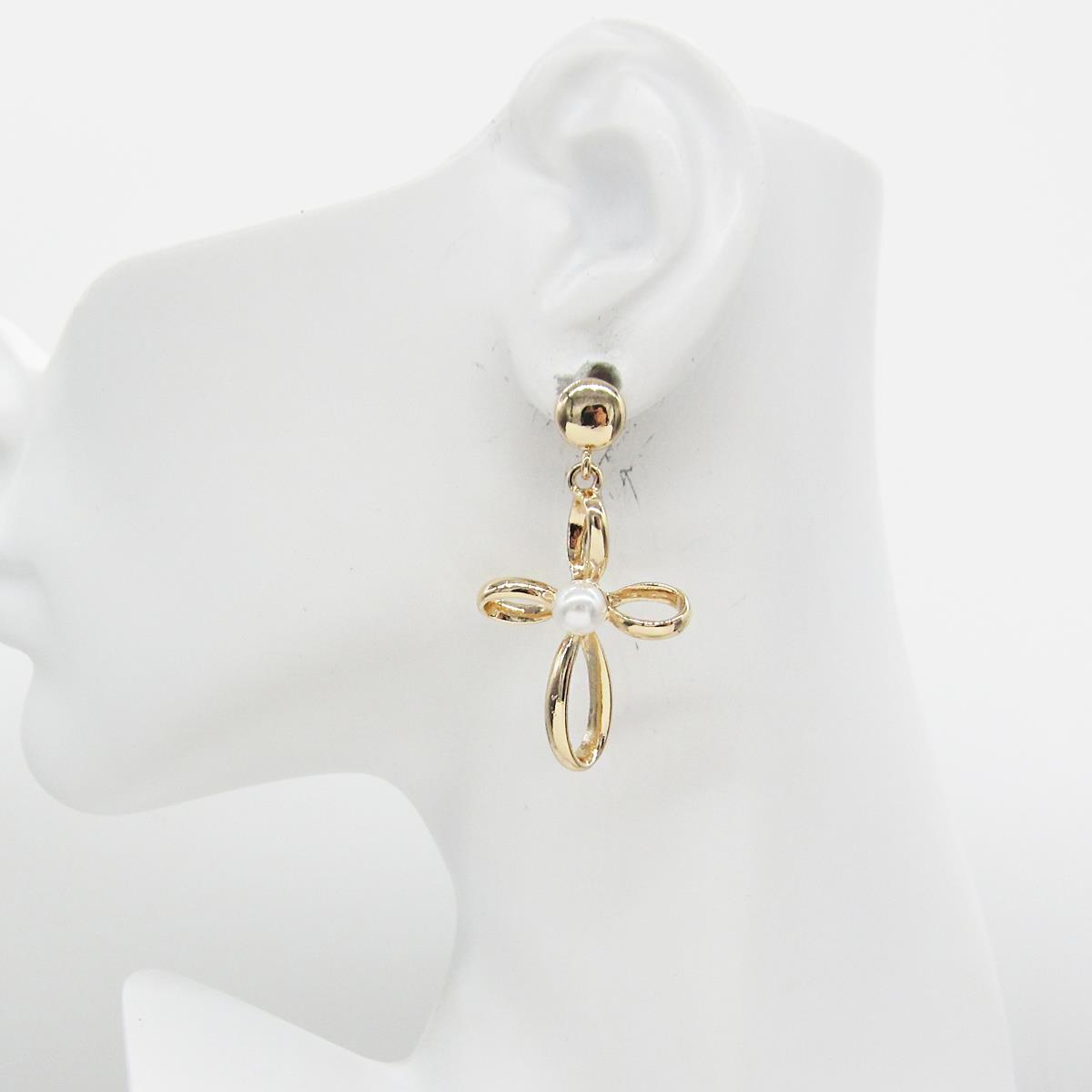 CROSS PEARL BEAD METAL EARRING