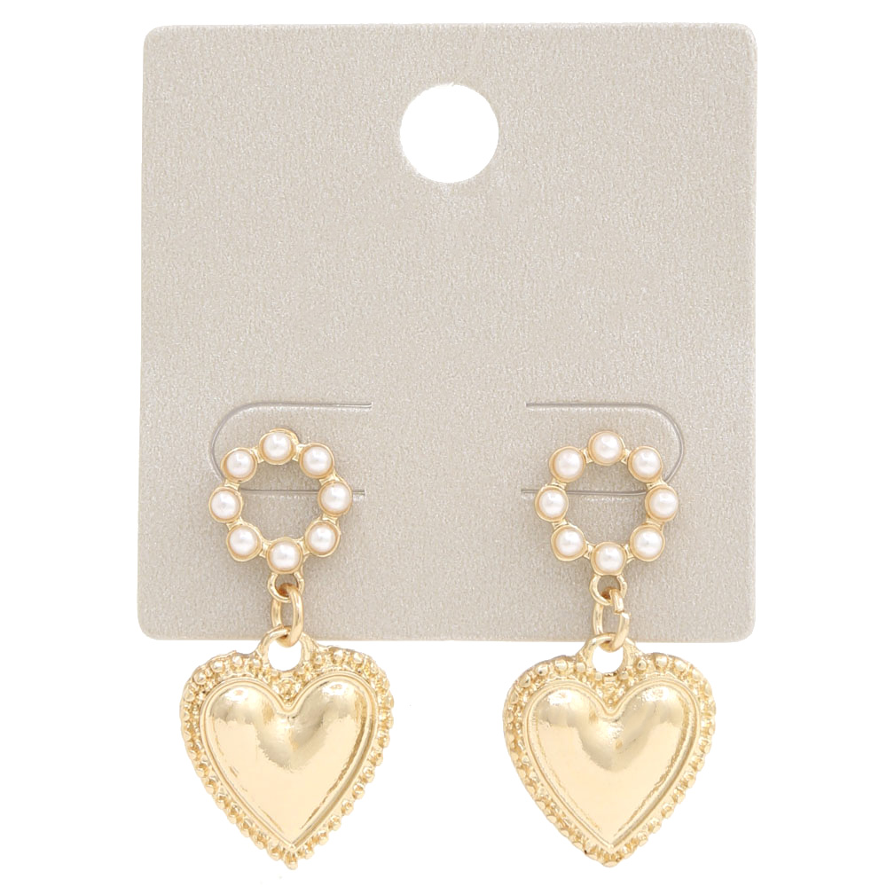 HEART PEARL BEAD METAL DANGLE EARRING
