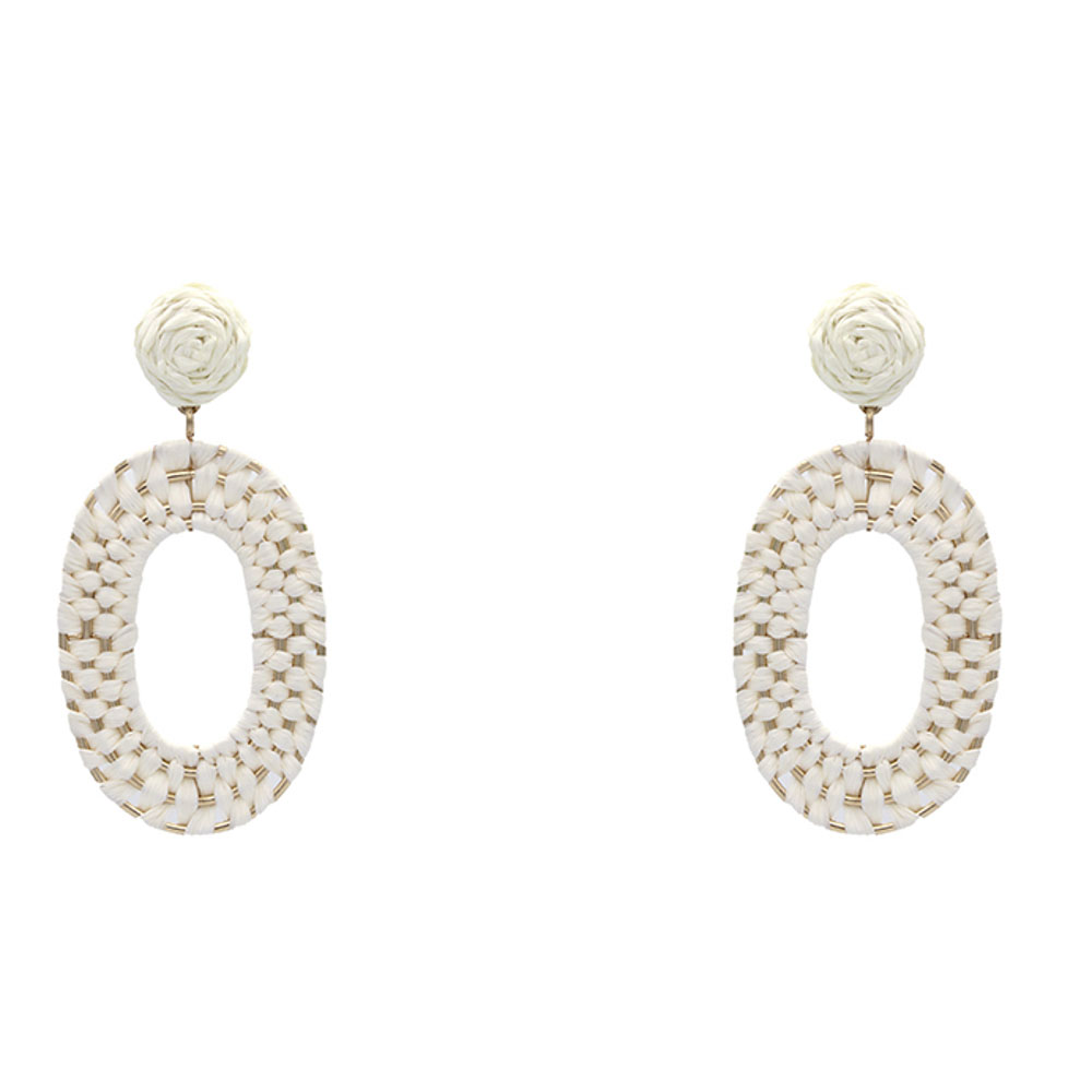 BEADED RAFFIA WRAPPED OVAL EARRING