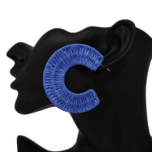 COLOR BLOCK OPEN CIRCLE RAFFIA WRAPPED OPEN CIRCLE EARRING