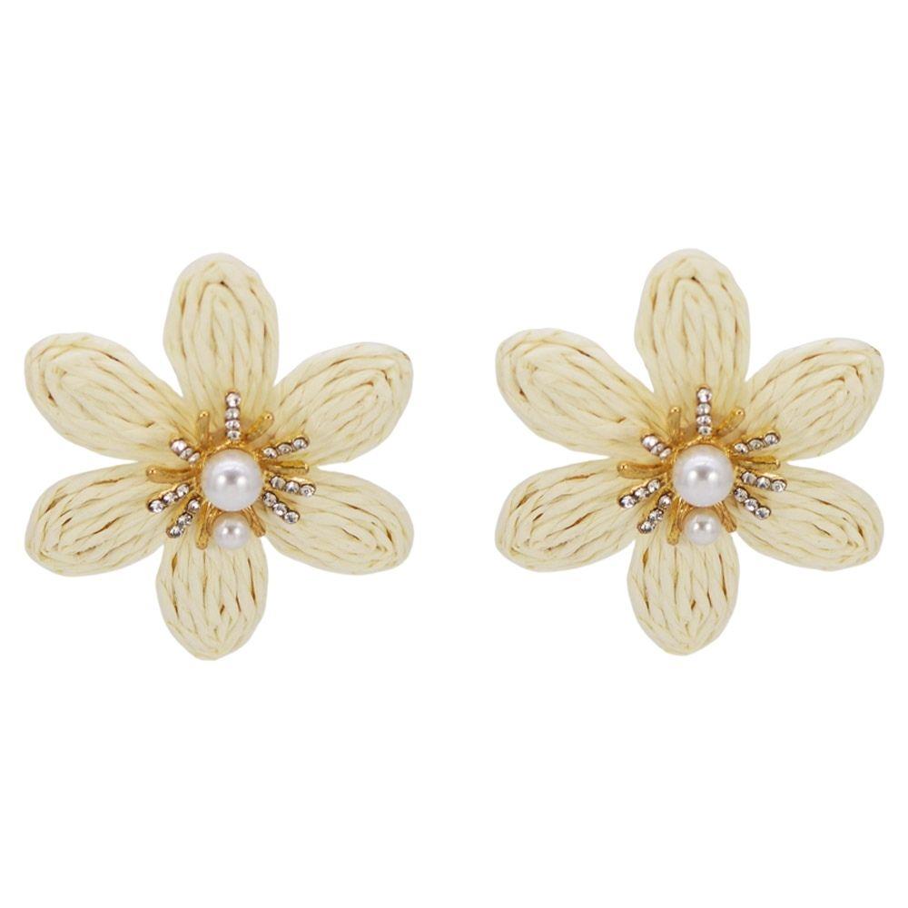 FLOWER RAFFIA BEADED U SHAPE EARRING