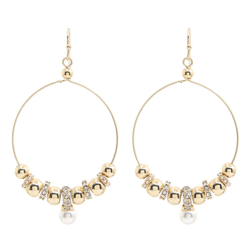 ROUND BEADED DANGLE OPEN HOOP EARRING