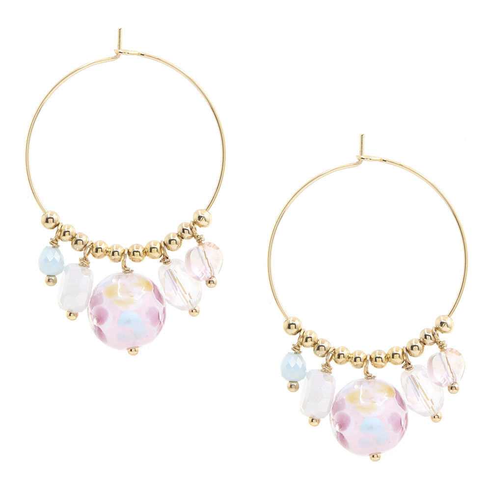MIX BEADED METAL HOOP EARRING