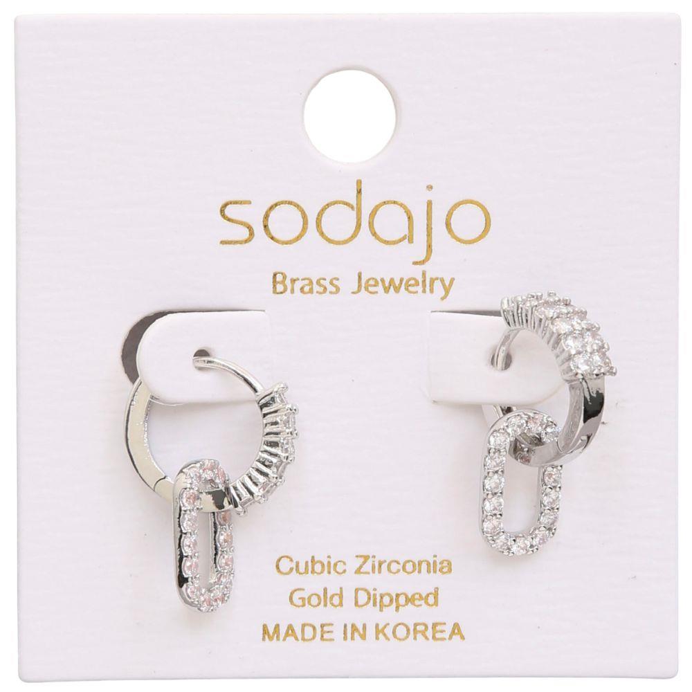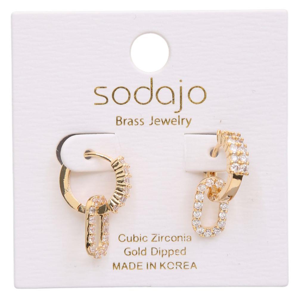 SODAJO CZ ROUND OVAL LINK GOLD DIPPED EARRING