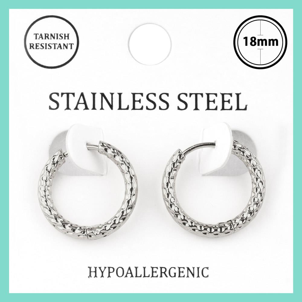 METAL STAINLESS STEEL TEXTURE HOOP HUGGIE EARRING