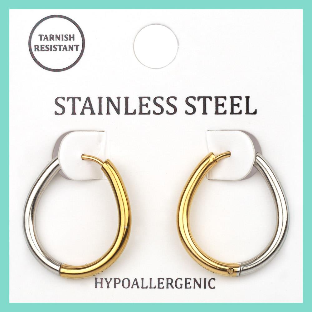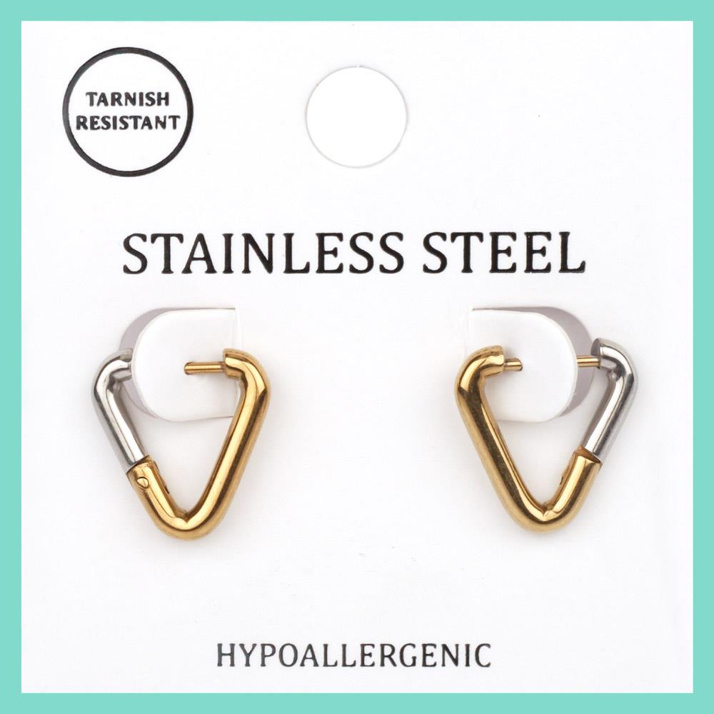 METAL TWO TONE STAINLESS STEEL HOOP HUGGIE TRIANGLE EARRING