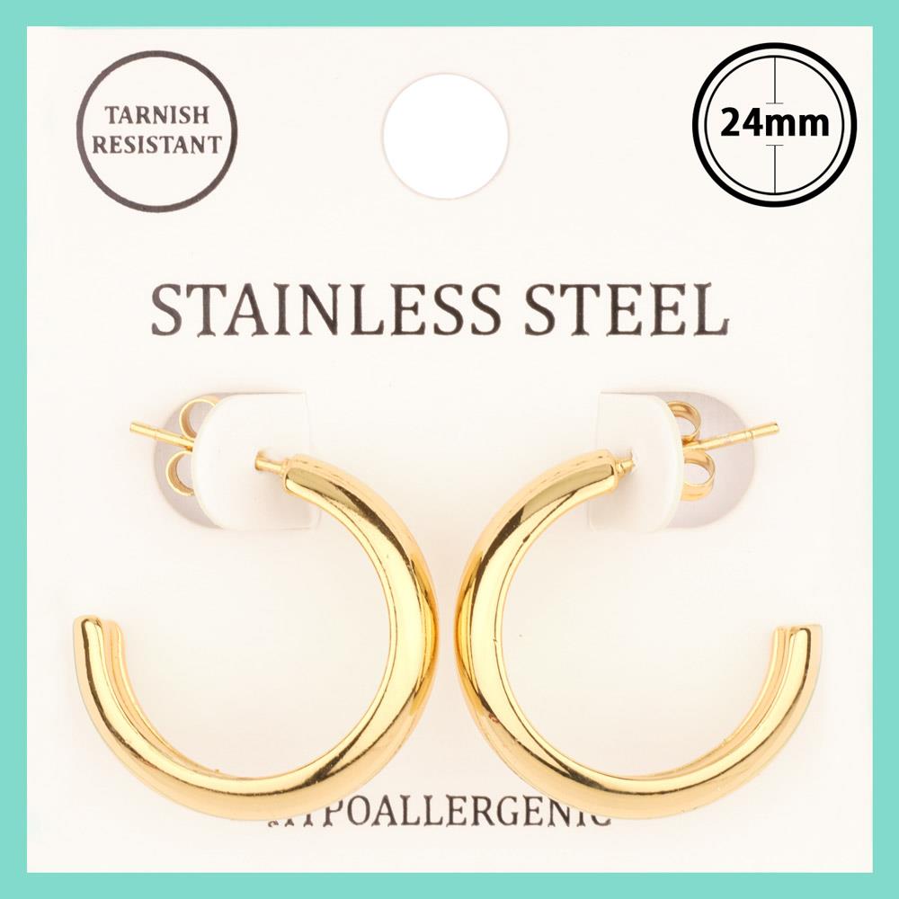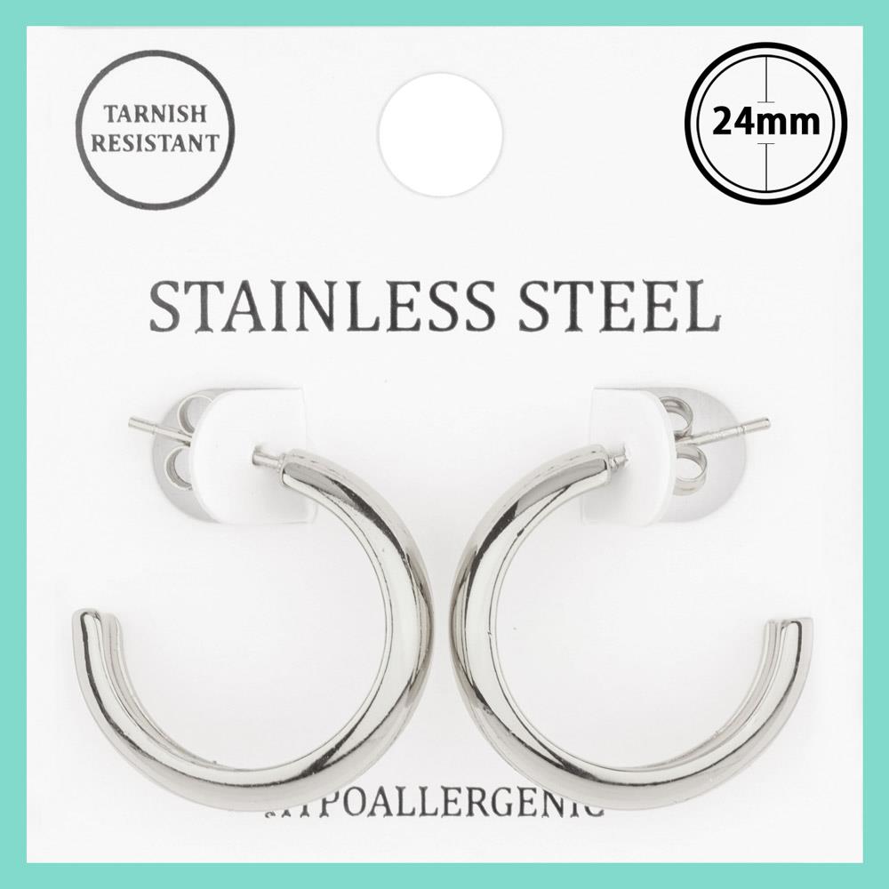 METAL STAINLESS STEEL HOOP HUGGIE EARRING