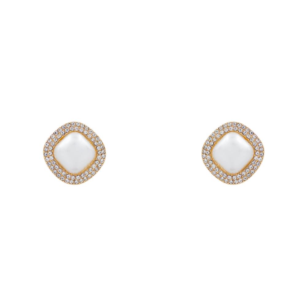 SQUARE CRYSTAL ROUND PEARL BEAD EARRING