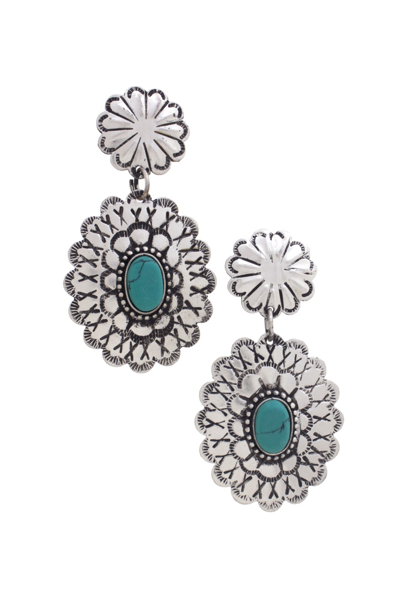 WESTERN TURQUOISE STONE TEARDROP CONCHO DANGLE EARRING