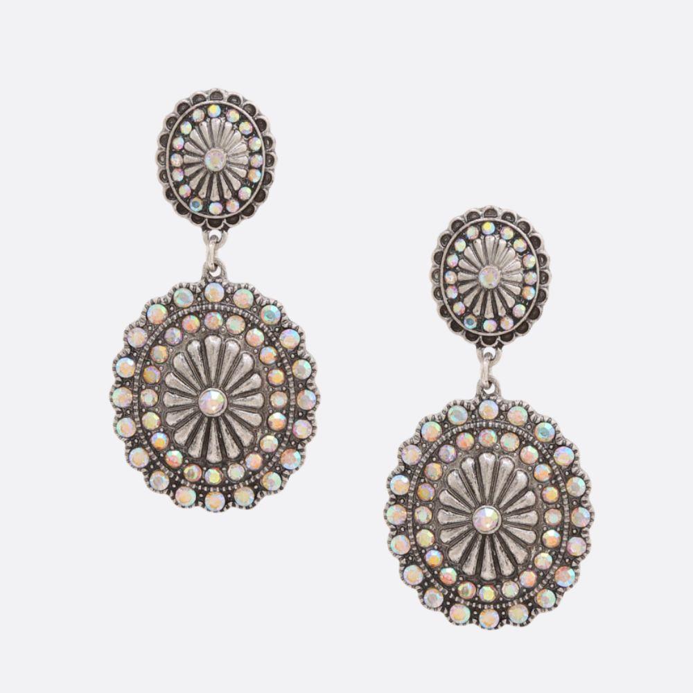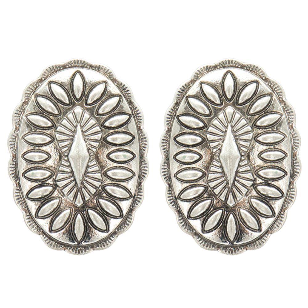 WESTERN STYLE OVAL CONCHO METAL EARRING