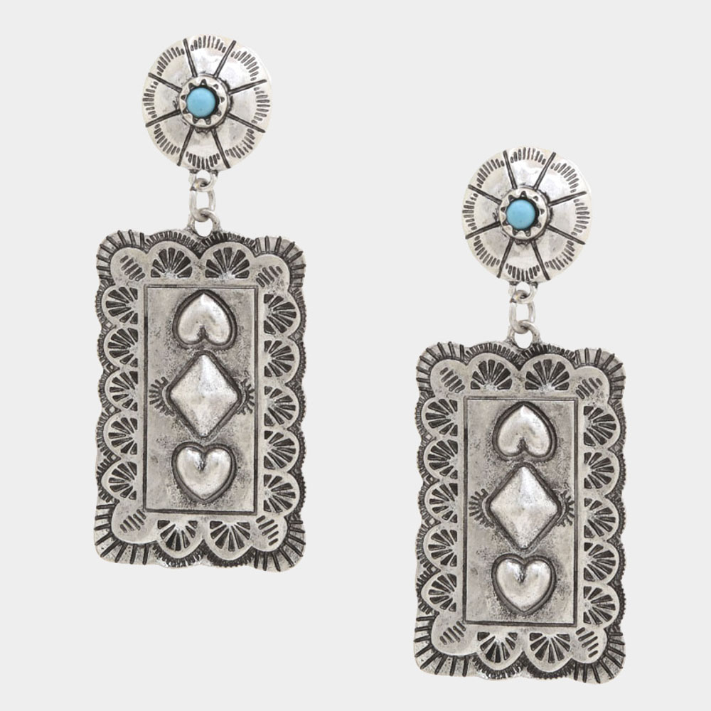 WESTERN RECTANGLE SHAPE COWBOY HOOK EARRING