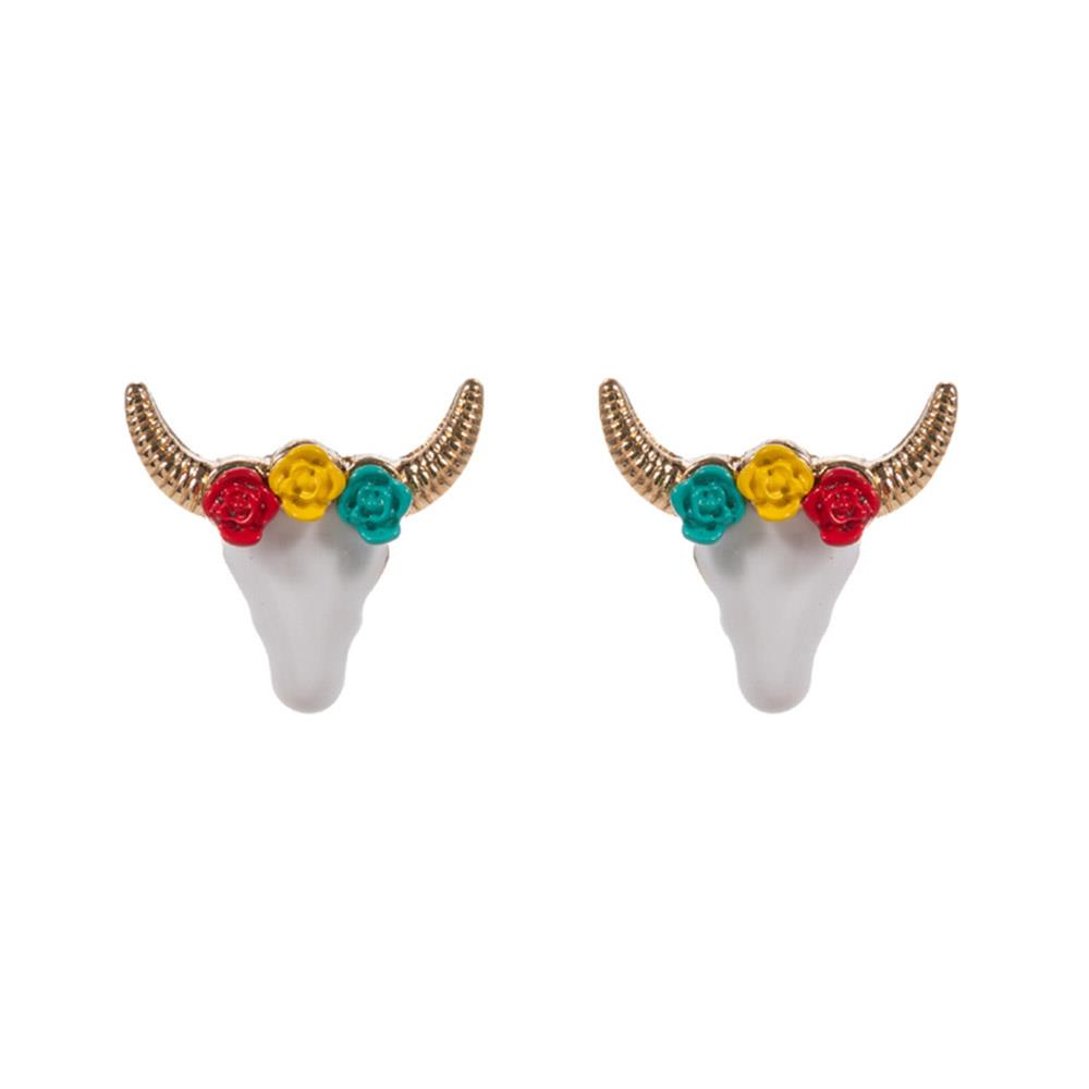LONGHORN COLOR COATED FLOWERS POST EARRING