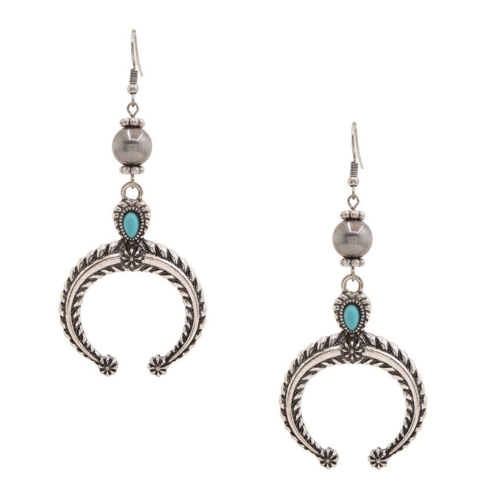 WESTERN BALL TEXTURE HORSESHOE DANGLE EARRING