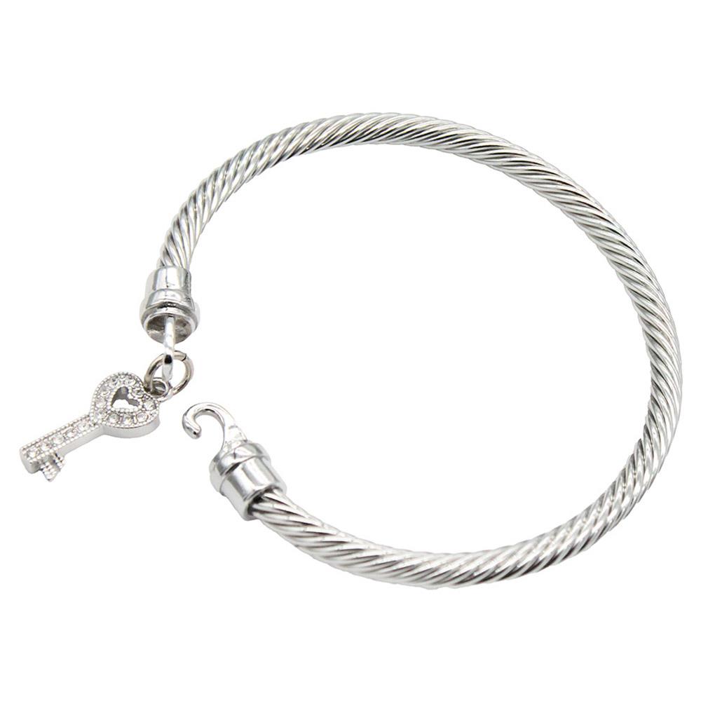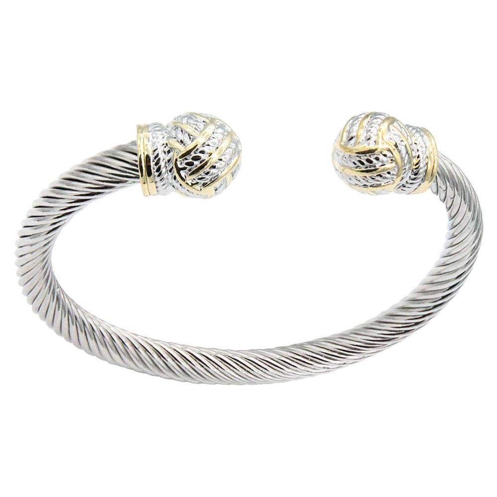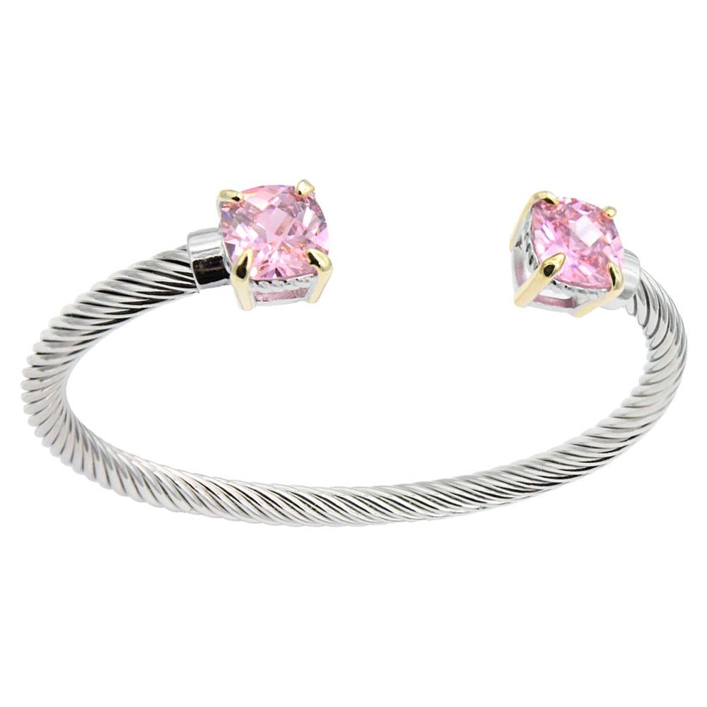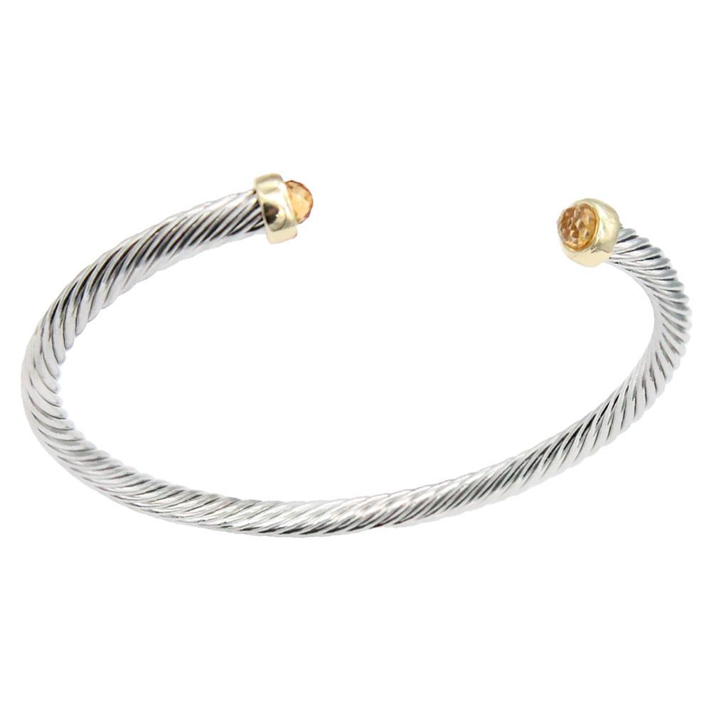 TWO TONES WITH CLEAR STONE CABLE CUFF BRACELET
