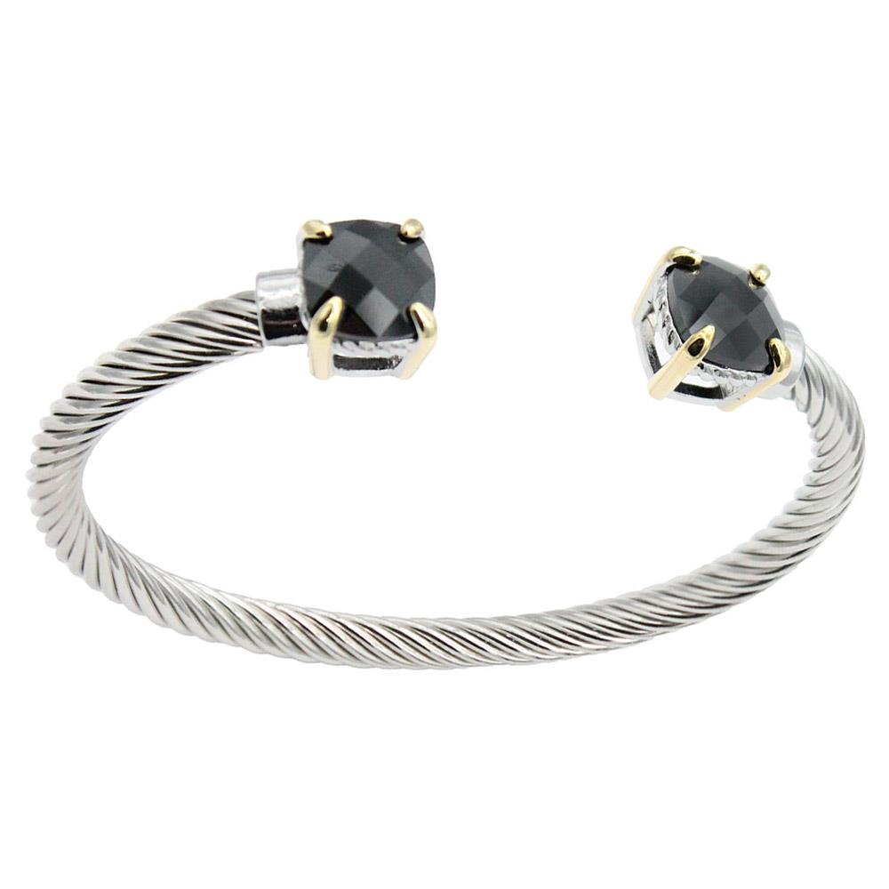 TWO-TONE STONE 6MM CABLE CUFF BRACELETS