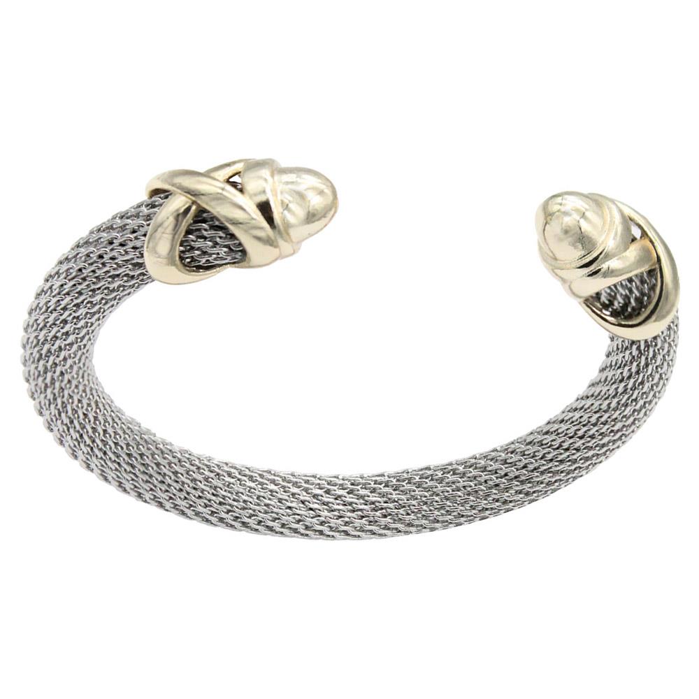 14K GOLD TWO TONE CUFF CABLE BRACELET