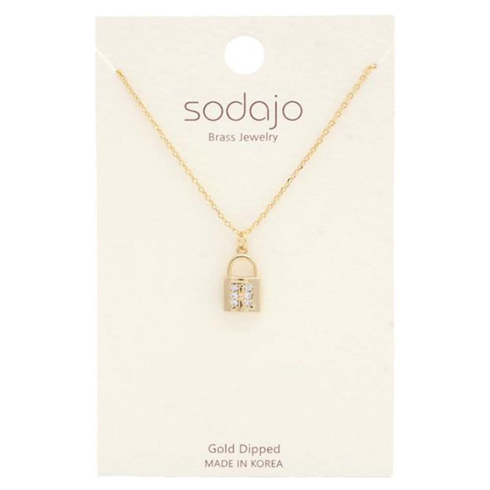 SODAJO RHINESTONE INITIAL LOCK CHARM GOLD DIPPED NECKLACE