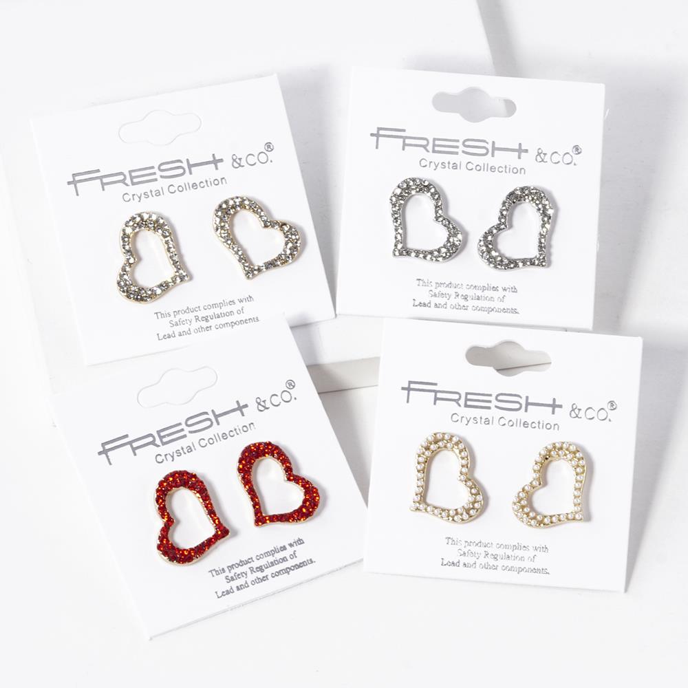 CUT OUT HEART RHINESTONE POST EARRING