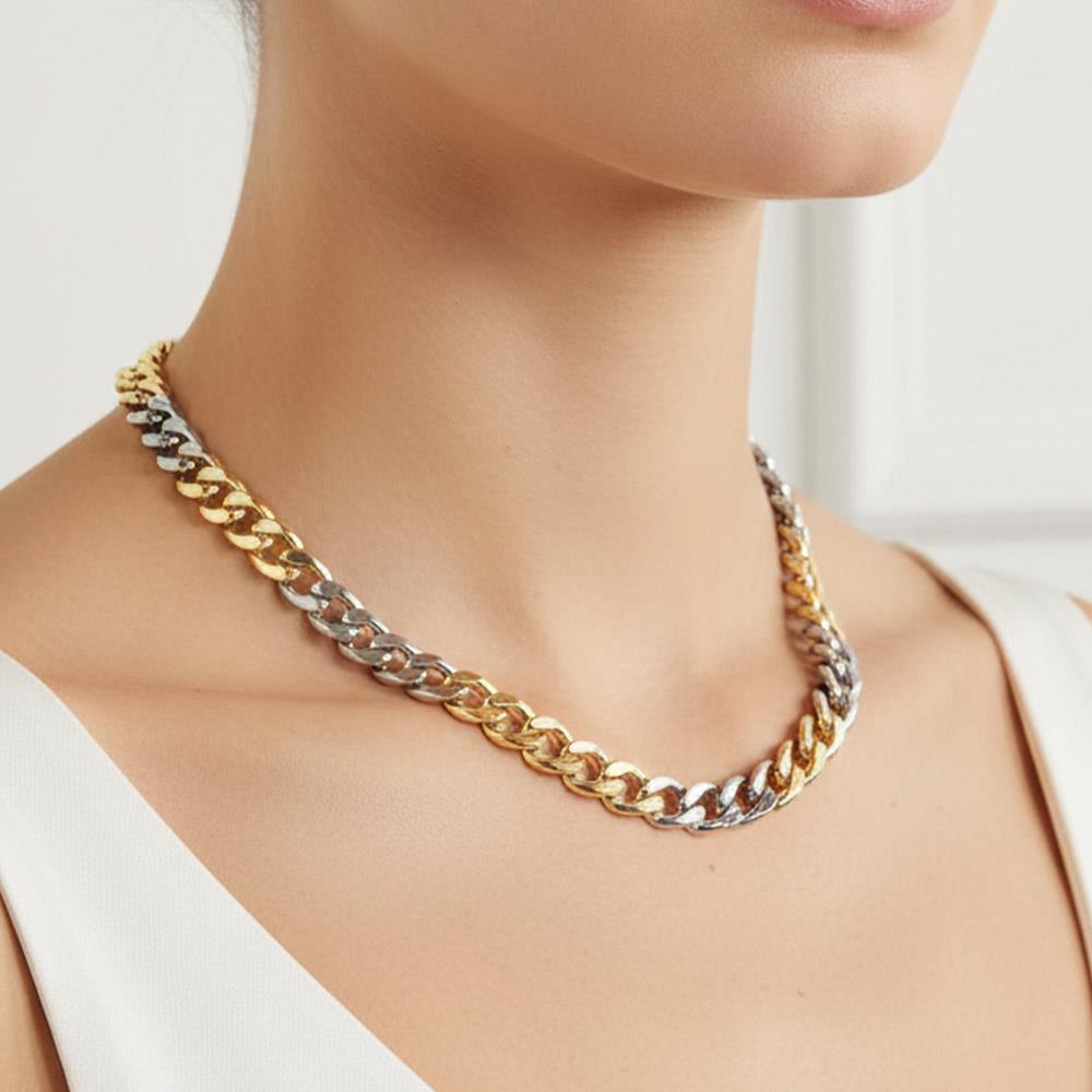 GOLD DIPPED TWO TONE METAL CHAIN NECKLACE