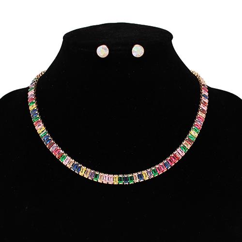 CRYSTAL STONE ROUND NECKLACE EARRING SET