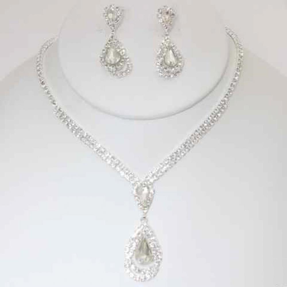 CRYSTAL TEARDROP RHINESTONE NECKLACE EARRING SET