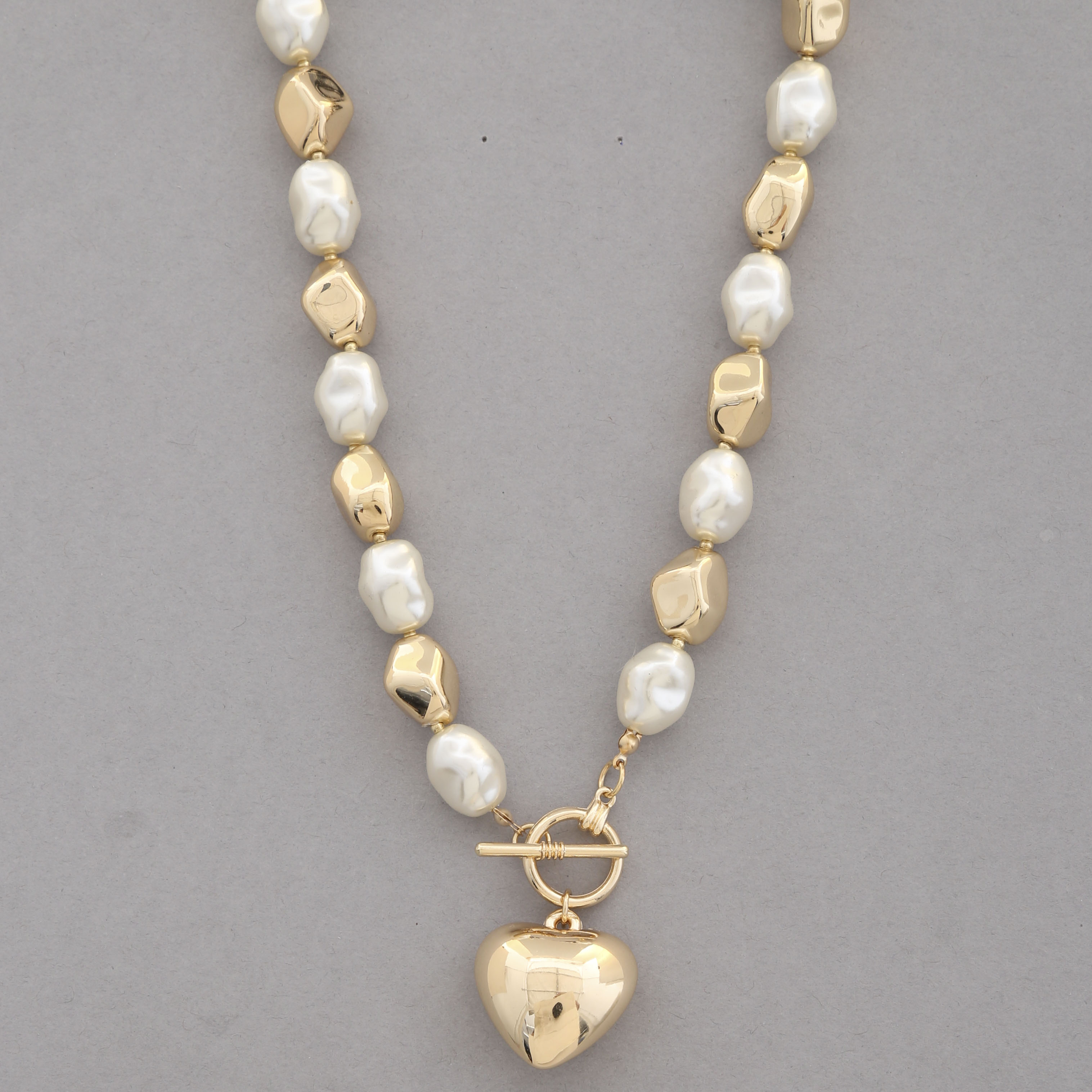 PUFFY HEART ORGANIC BEAD TOGGLE CLASP NECKLACE