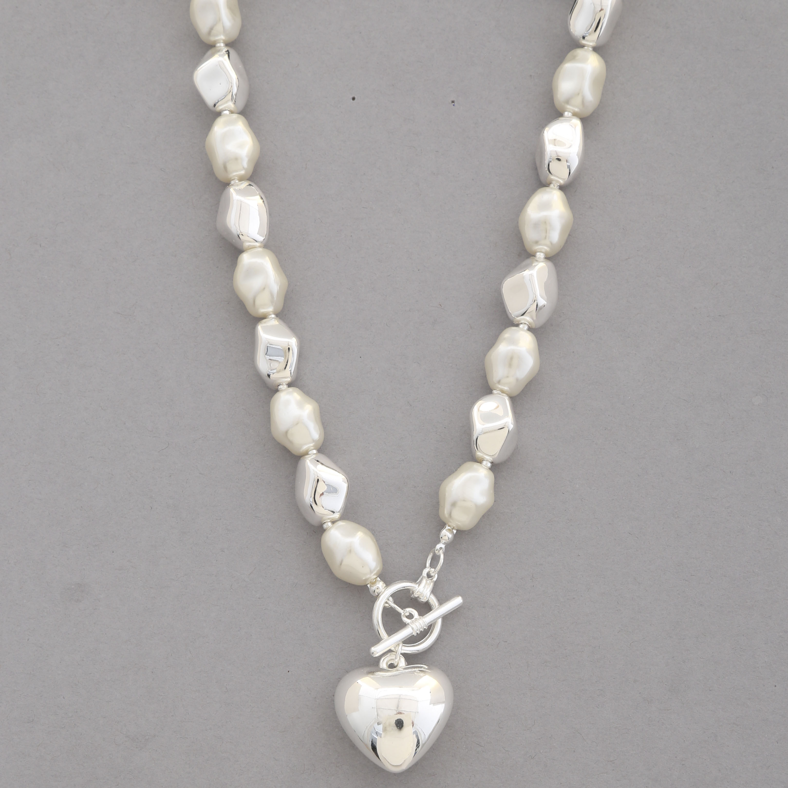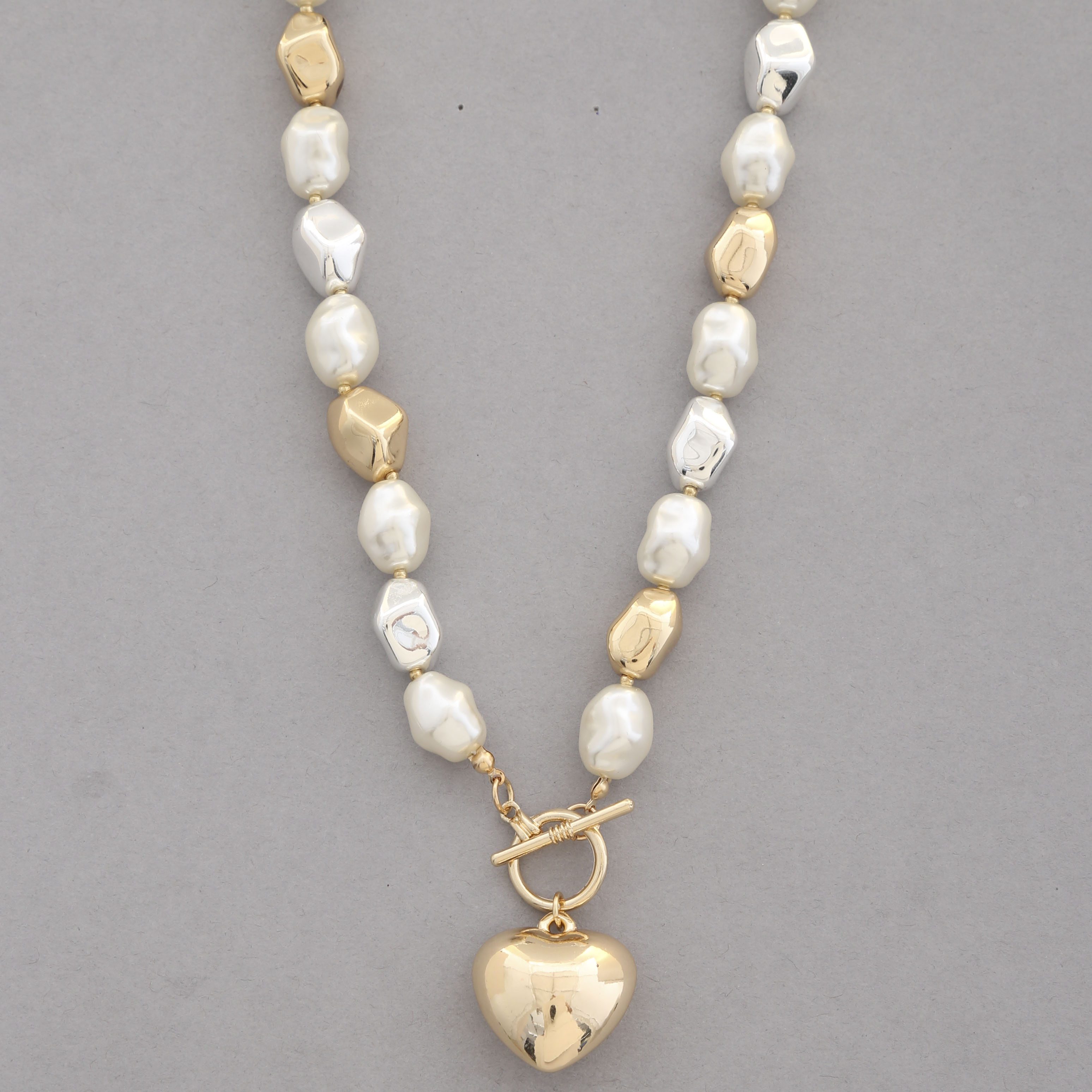 PEARL METAL BEAD CHAIN TOGGLE CLASP NECKLACE