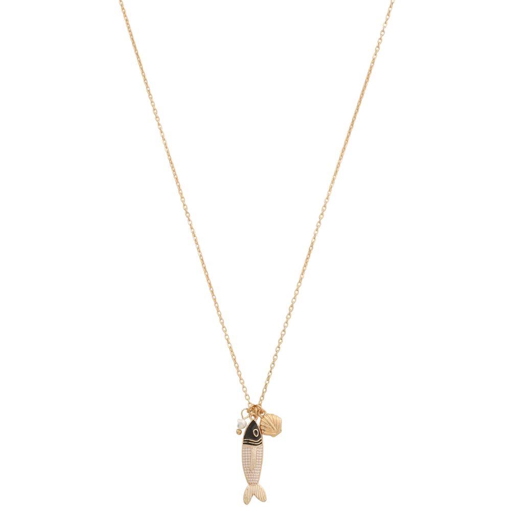 LAYERED MULTI STRAND FISH CHARM NECKLACE
