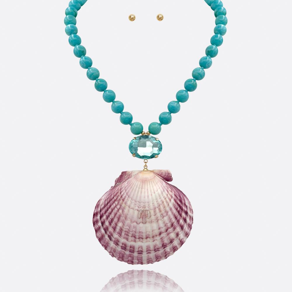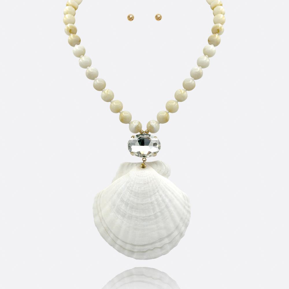SHELL SHAPED CERAMIC CHARM W/ RESIN BEADED NECKLACE