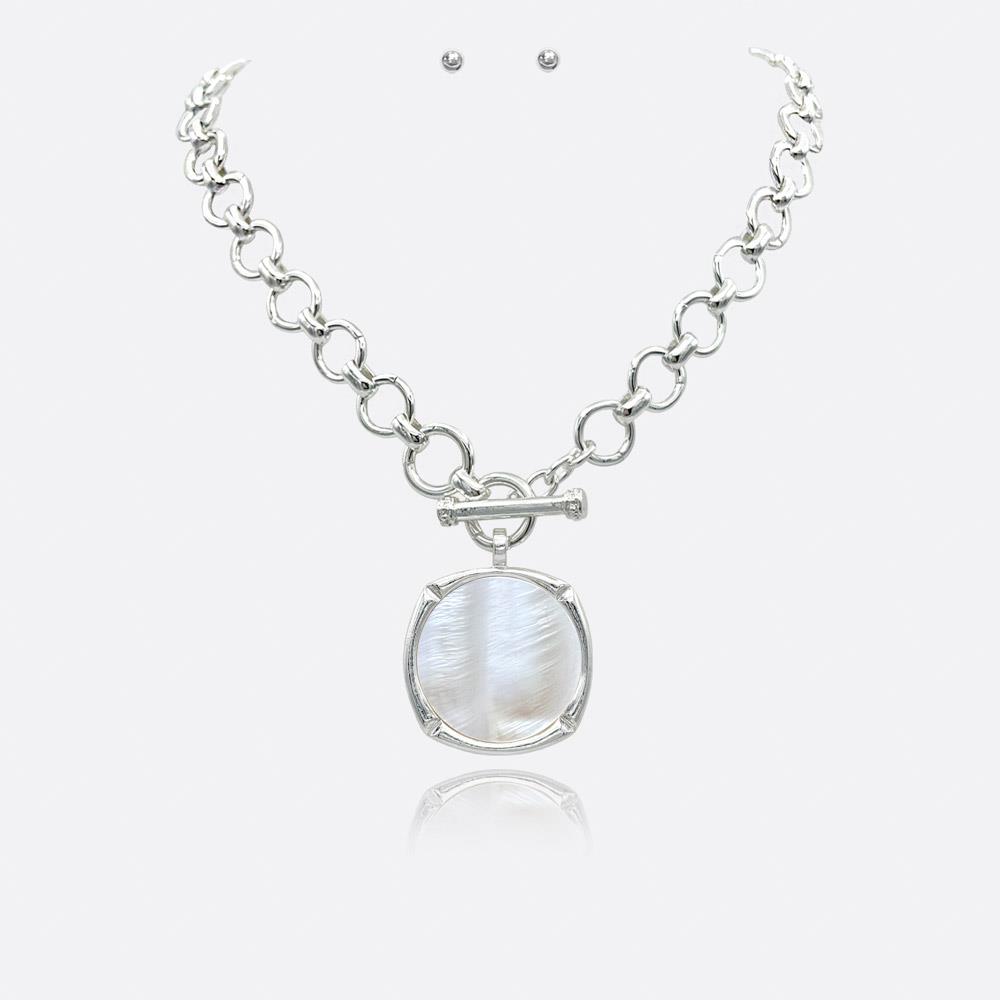 ROUND LINK TOGGLE CHAIN NECKLACE EARRING SET
