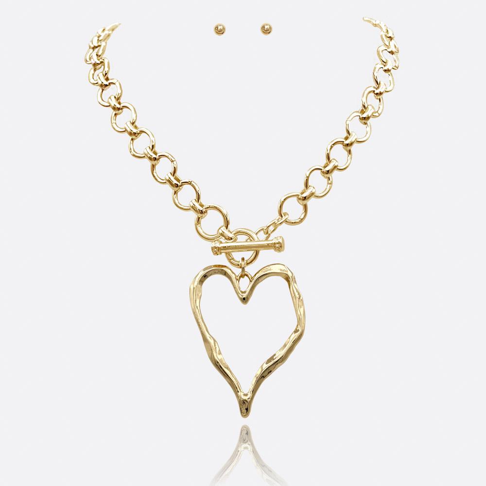 CUTOUT HEART PENDANT TOGGLE NECKLACE