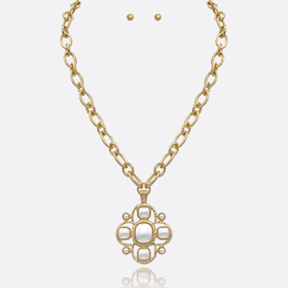 ROUND PEARL PENDANT CHAIN NECKLACE EARRING SET