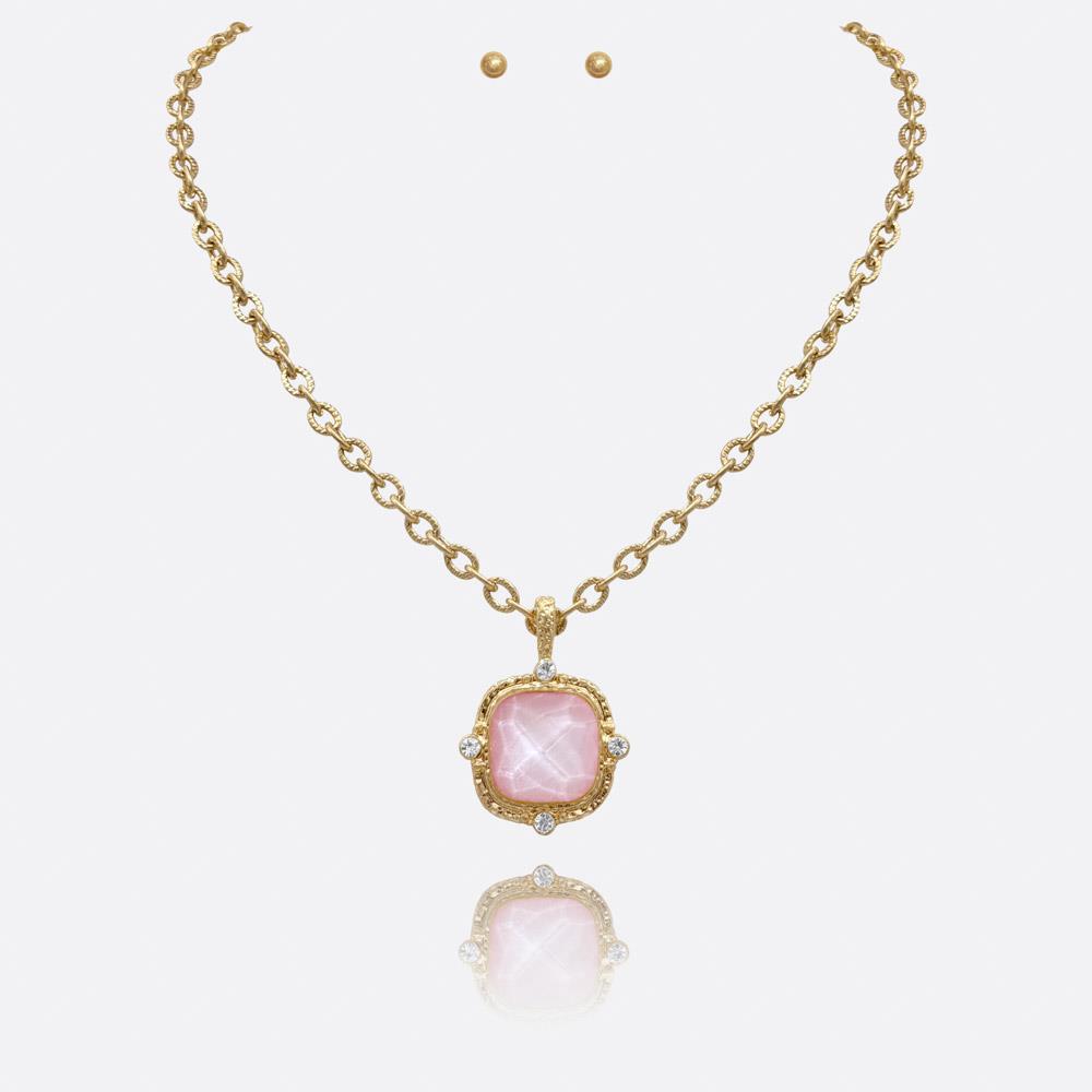 SQUARE STONE PENDANT CHAIN NECKLACE EARRING SET