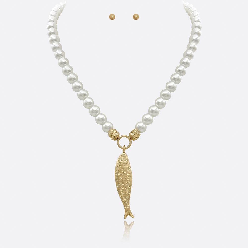 FISH PENDANT PEARL NECKLACE EARRING SET