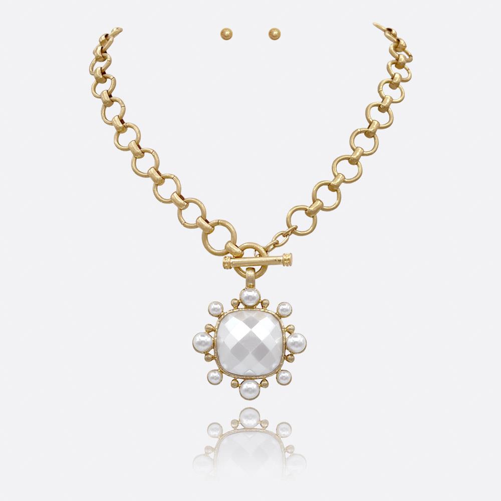 PEARL TQ STONE PENDANT CHAIN NECKLACE EARRING SET