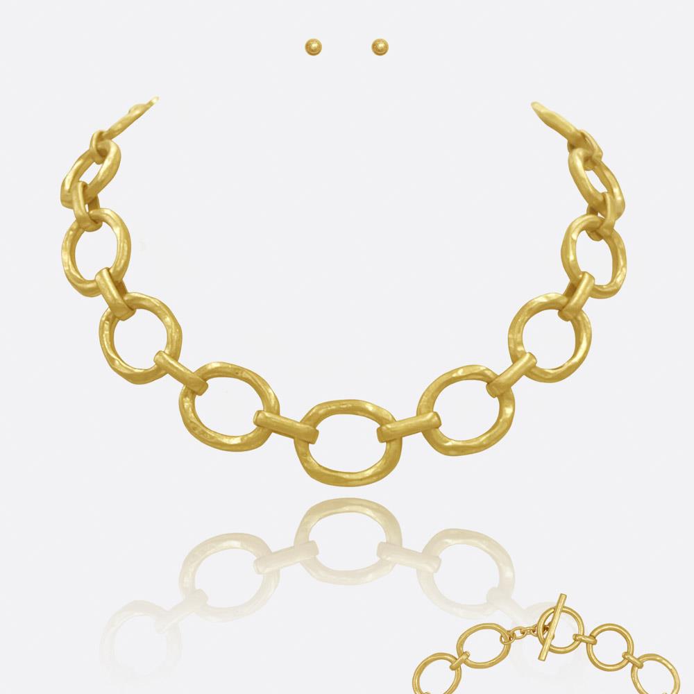 ROUND LINK CHAIN NECKLACE EARRING SET