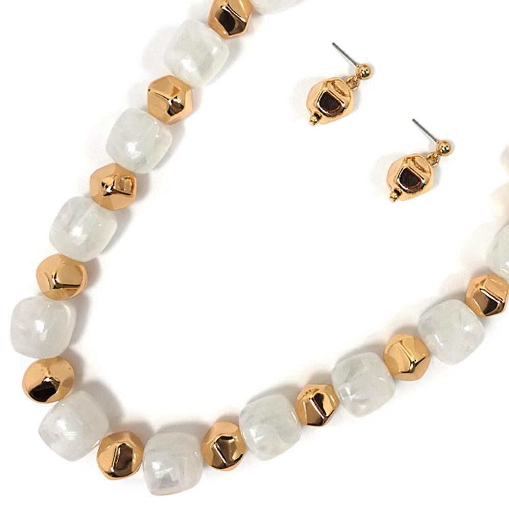 PEARL METAL MIX BEAD NECKLACE EARRING SET