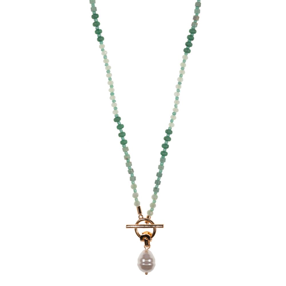 MULTI SHAPED RESIN BEAD WITH ORGANIC SHAPED PEARL PENDANT NECKLACE