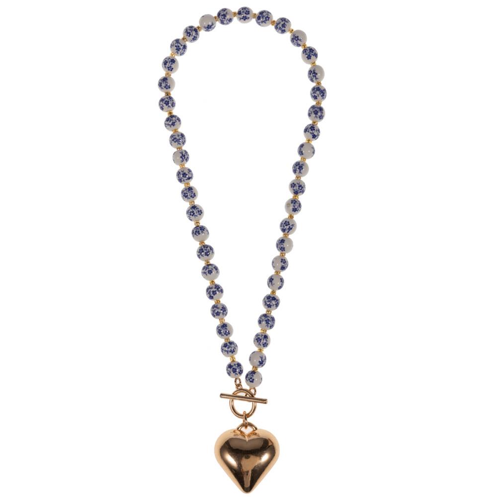 PUFFY HEART PENDANT CERAMIC BEAD NECKLACE