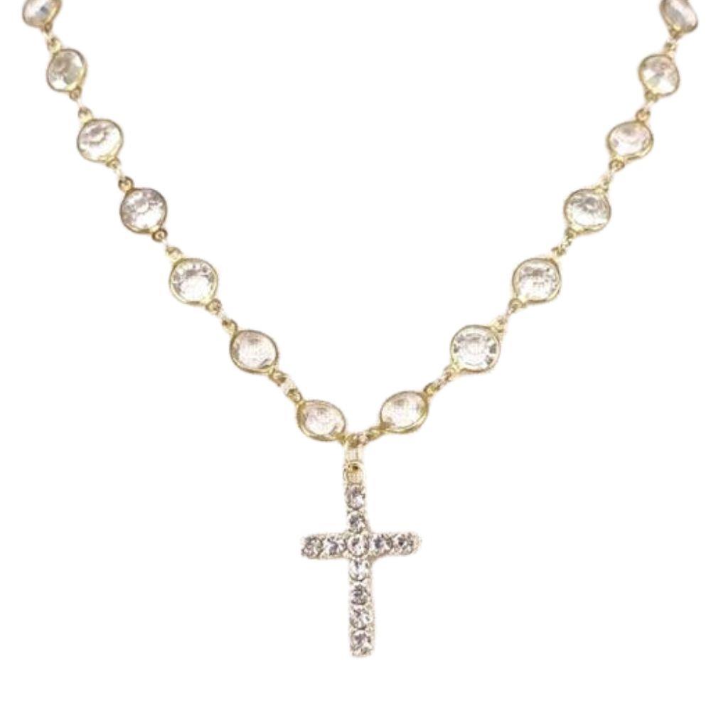 RHINESTONE CZ CROSS PENDANT NECKLACE