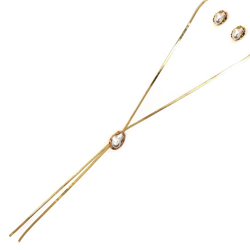 Y DROP W PEARL PENDANT NECKLACE EARRING SET