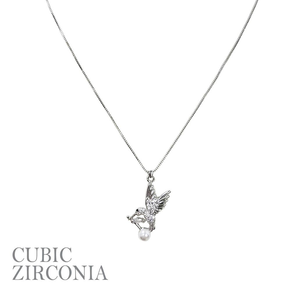 LITTLE BALL CUBIC ZIRCONIA HEART STONE PENDANT WATER RESISTANT  NECKLACE