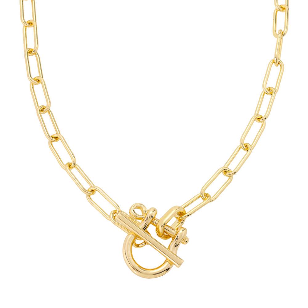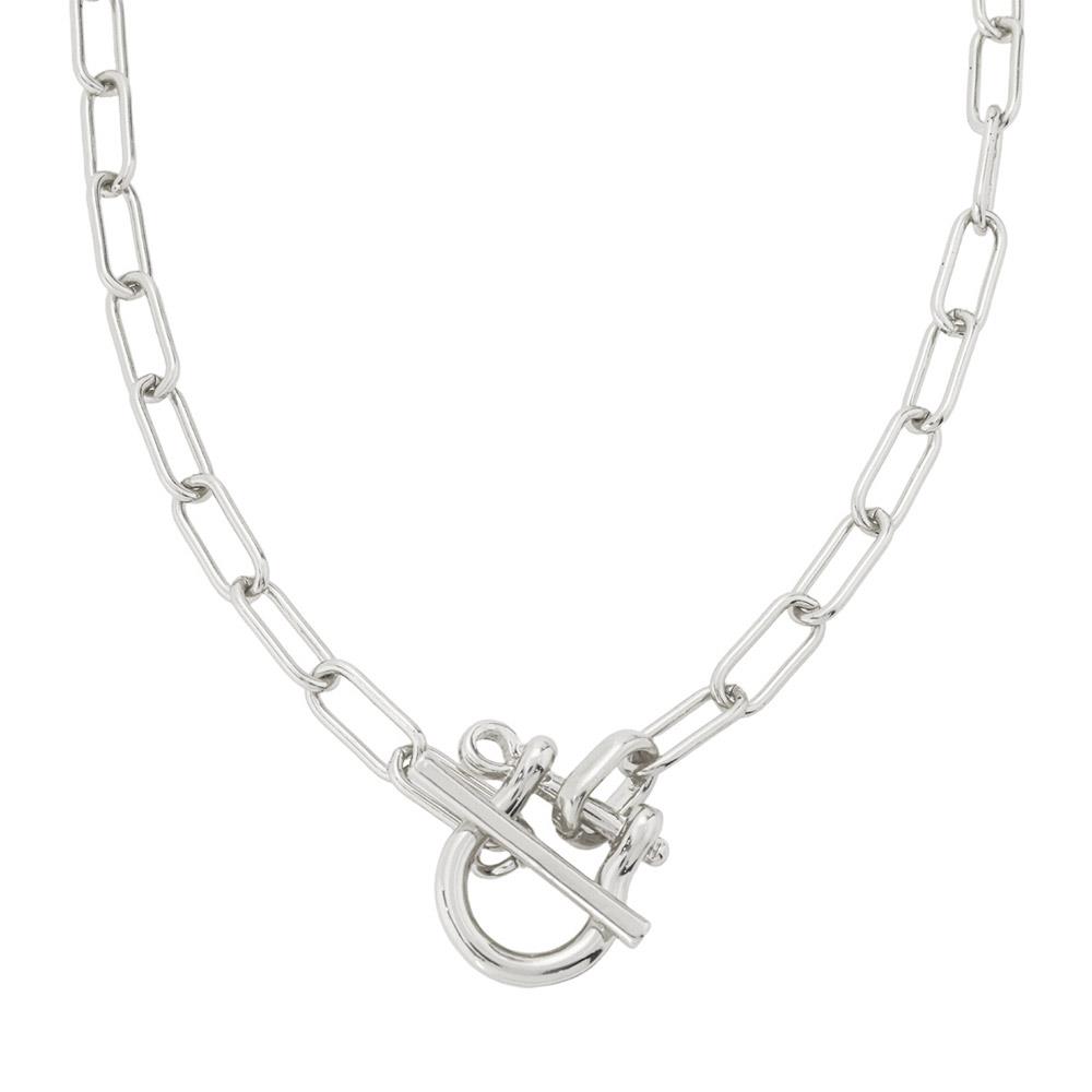 WIDE CROSS PENDANT TOGGLE CLASP CIRCLE LINK METAL NECKLACE