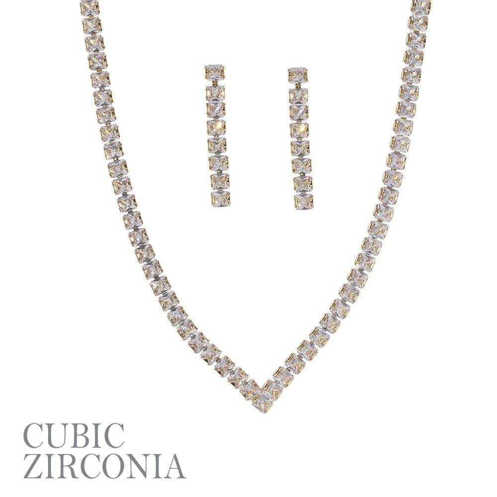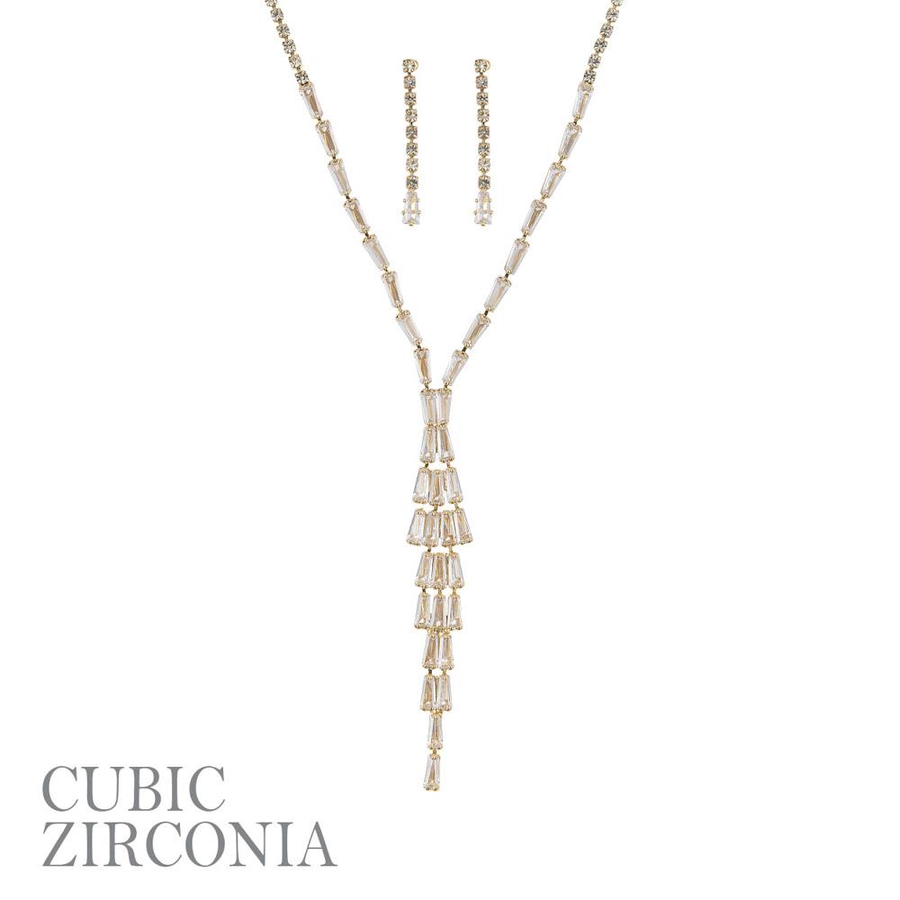 CZ RHINESTONE TRAPEZOID Y NECKLACE EARRING SET