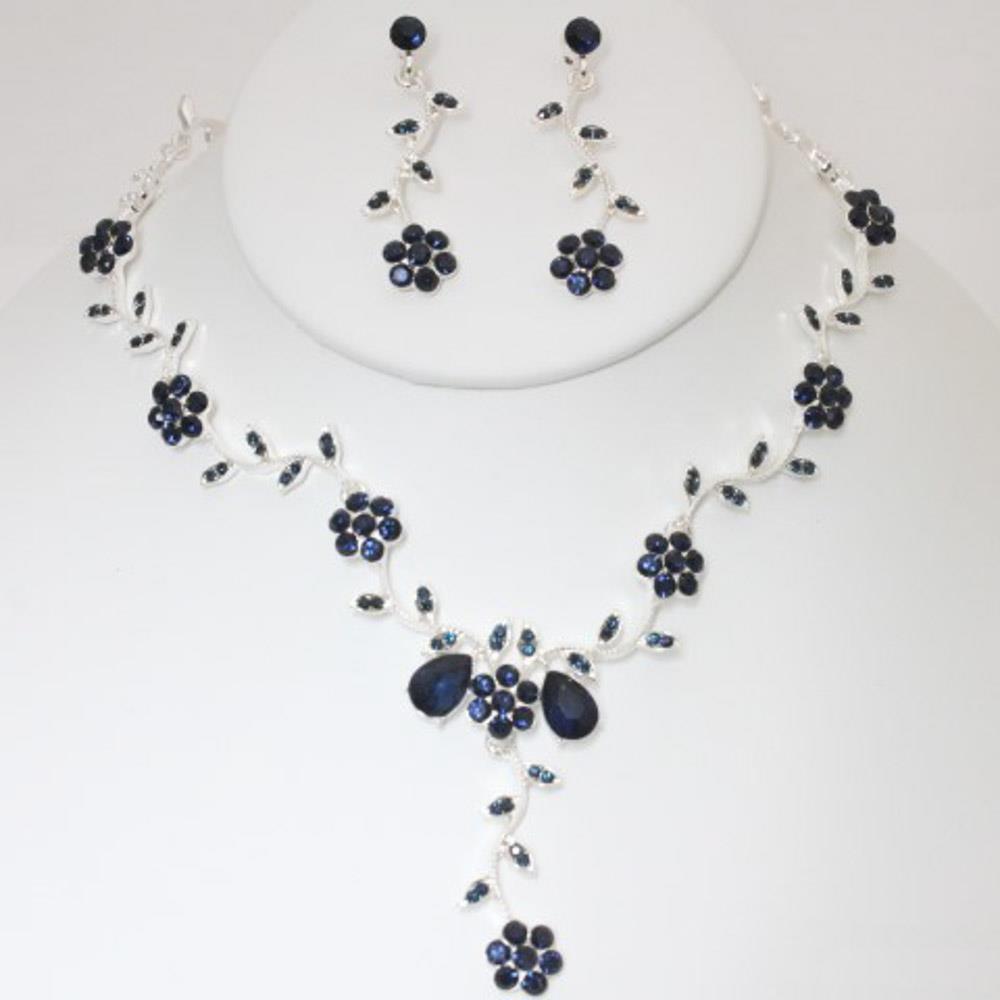 RHINESTONE FLORAL STATEMENT NECKLACE EARRING SET