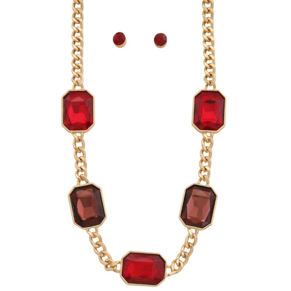 SQUARE STONE PENDANT CHAIN NECKLACE EARRING SET